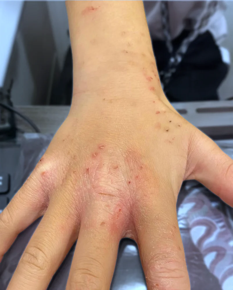 於2024年4月29日覆診時,雙手手掌乾燥情況較前改善,手腕紅疹亦見減少。